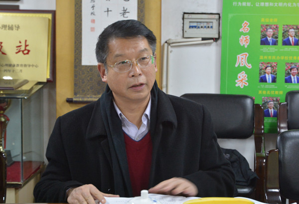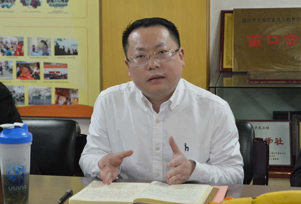 温州育英国际实验学校高中分校校长林永德汇报工作