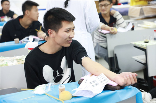 再现育英人奉献精神11月17日,浙江育英职业技术学院举行了每年两次的无偿献血活动,这天一大早就有许多学生在排队等候献血。来到献血大厅,见人潮涌动,除标配的三辆献血车之外,还征用了一间教室采血。据统计,此次参与献血报名的有1200人左右,最终通过年龄、血液标准筛查共有920人,总计献血量261870ml。比去年同期增加了97位同学及17410毫升的献血量,集中体现了育英人奉献爱心的精神。