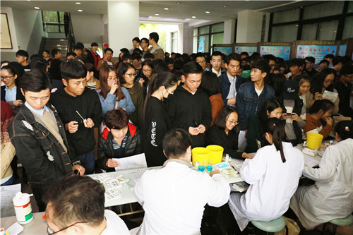 工作人员和青年志愿者辛勤付出,活动现场井然有序。志愿者们各司其职,他们有的耐心地为前来献血的同学介绍流程、指引方向;有的随时准备解答同学们在献血过程中遇到的各种问题;各分院工作人员在登记处忙着登记献血名单;礼品处的志愿者也忙着给献血的同学分发纪念品。