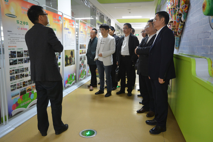 黄纪云董事长一行观看育英小学课程改革成果展版