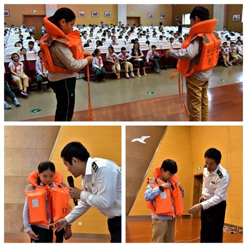 授牌仪式结束,温州乐清湾海事处团支部书记王赛伟以《水上平安交通 安全伴我成长》为题,从温州海事、少年海事学校、水上安全知识、救生衣的穿法、安全措施小贴士、安全规定、水上出行“四要看”等方面,为孩子们作了一场生动、精彩的海事知识讲座。现场,海事处的工作人员还进行了救生衣正确穿戴演练指导。孩子们纷纷表示受益匪浅。