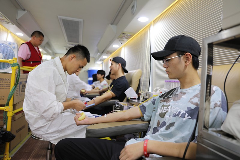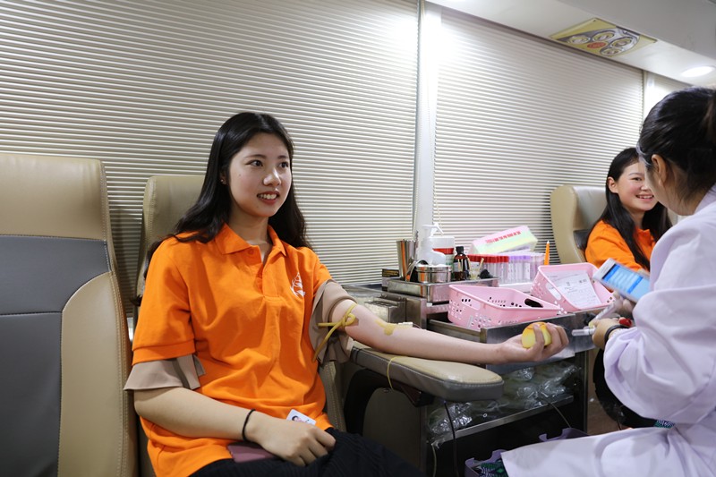 全国无偿献血奉献奖金奖获得者,商务贸易分院胡岳辉作为教师代表发言,他在过去13年里,共51次参与全血和单采血小板无偿捐献,累计献血总量达21100毫升。按照正常成年人血量为4000—5000毫升计算,相当于把全身的血液换了5遍。他觉得奉献比索取更快乐,献血的同时也净化自己的心灵,让自己更加富有爱心和责任感,献血后也感到无比欣慰和自豪。