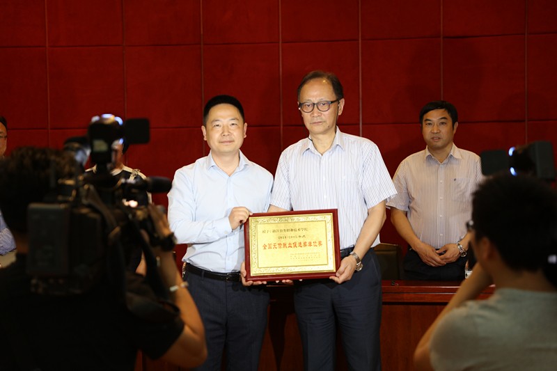 胡伟宣布国家卫生计生委、中国红十字会总会和中央军委后勤保障部卫生局《关于表彰2014-2015年度无偿献血奉献奖金奖等奖项获奖者的决定》并授牌。浙江育英职业技术学院荣获全国无偿献血促进奖单位奖。全国获此项殊荣单位284家,浙江省10家,浙江育英职业技术学院为杭州市唯一获此项荣誉单位。胡伟充分肯定学院无偿献血工作,并对获得荣誉表示祝贺。