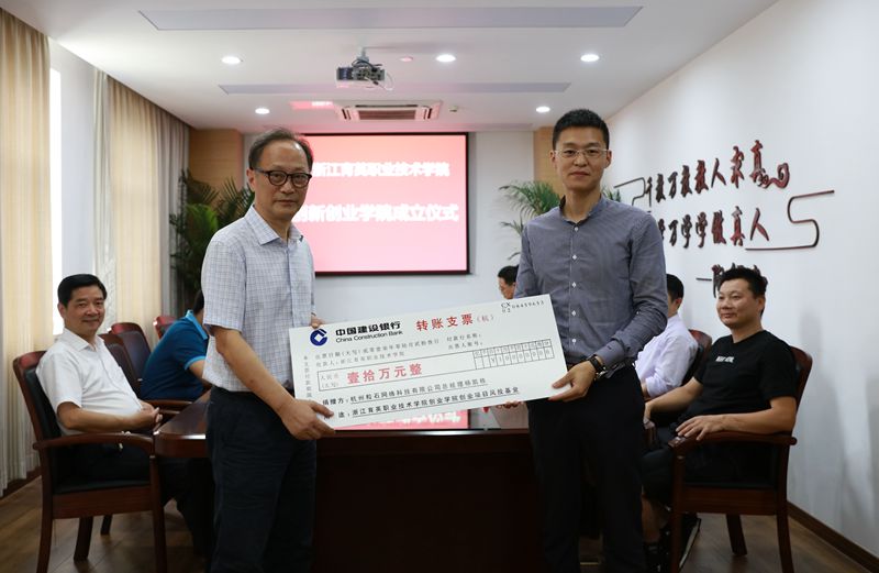 成立仪式上还进行了创新创业基金捐助活动,由商务贸易分院捐助成立创业天使基金。该基金主要用于学院创新创业教育学生的前期资助与激励奖励,学院也将1:1配套投入,使基金能服务于更多有志向、有行动的在校创业学生。