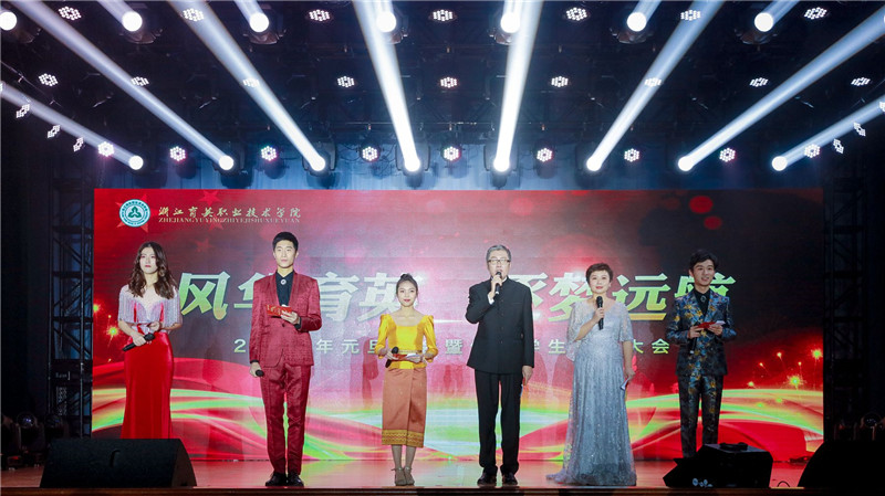 12月26日晚,“风华育英 逐梦远航”2020年元旦晚会暨优秀学生表彰大会在浙江育英职业技术学院体育馆隆重举行。学院终身名誉院长洪致平,党委书记、院长王锡耀,党委副书记、副院长谢鑫,院长助理徐晓斌和千余名师生共聚一堂,喜迎新年。
