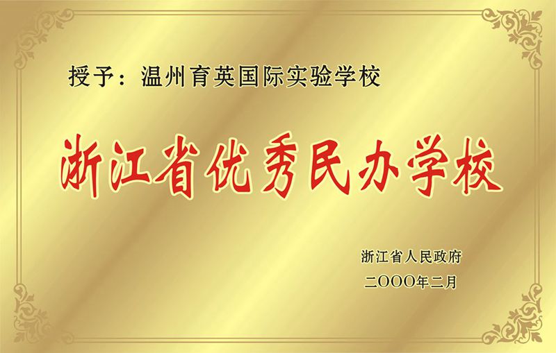 温州育英国际实验学校创办于1996年,是一所从小学、初中到高中的十二年一贯制全日制民办寄宿制学校。先后获得全国民办教育先进集体、浙江省优秀民办学校、浙江省三级重点高中、浙江省现代教育技术实验学校、浙江省Ⅰ类标准化学校、温州市素质教育示范学校、温州市花园式单位、温州市文明单位、温州市民办教育改革窗口学校等荣誉称号,是一所园林式的现代化国际学校。