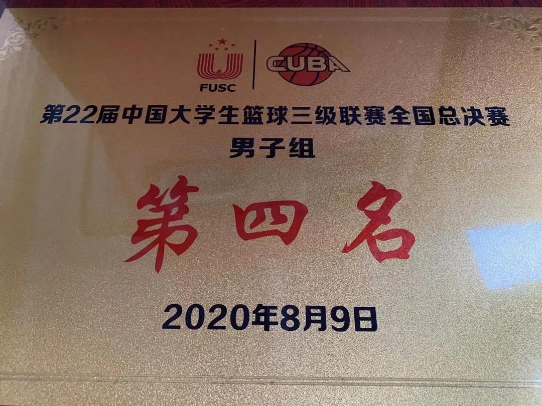育英学院男子篮球队夺得第22届中国大学生篮球三级联赛全国总决赛第四名
