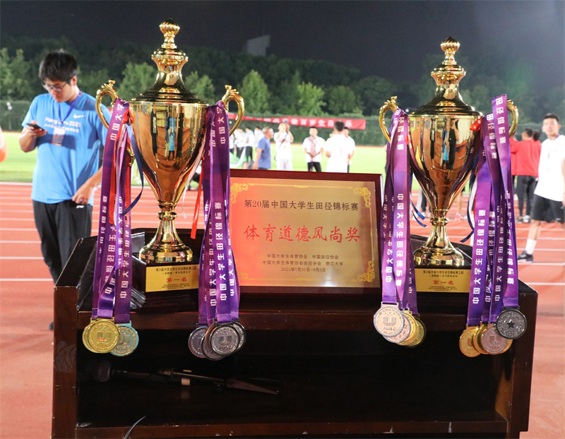 8月4日晚,第20届中国大学生田径锦标赛在浙江大学闭幕。浙江育英职业技术学院派出的10名运动员(7女3男)经过5天激烈角逐,勇夺6金5银3铜,以总分143分(第二名91.5分)的成绩夺得总团冠军、女团冠军,并获体育道德风尚奖。这是继2017年和2019年分别夺得总团冠军之后,再次夺得总团冠军。主教练汤剑辉、教练员朱丹丹。