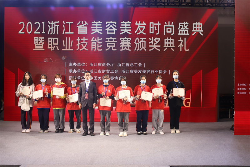 2021年浙江省美容美发职业技能竞赛由浙江省商务厅、浙江总工会主办,创意设计分院20级人物形象设计专业沈纯伊获学生组新娘妆比赛一等奖;19级人物形象设计专业薛佳婷获学生组职业妆一等奖;19级人物形象设计专业谢梦梦获学生组职业妆二等奖;20级人物形象设计专业张可心、沈楠、赵文祺获学生组晚宴妆比赛三等奖。张家闲、沈思冰获优秀教师指导奖。