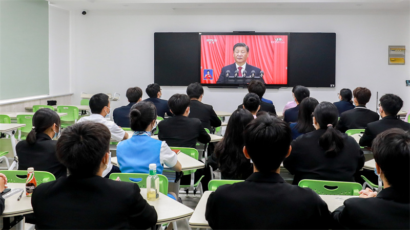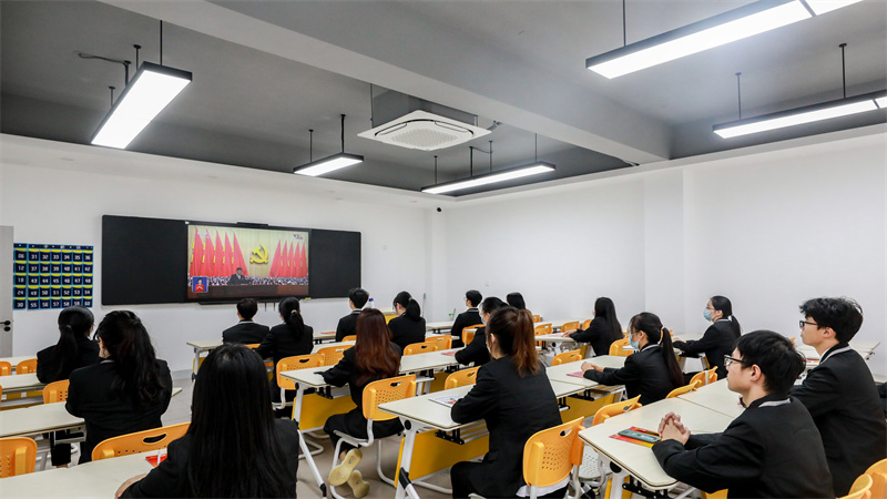 浙江育英职业技术学院师生集中收看党的二十大开幕会盛况
