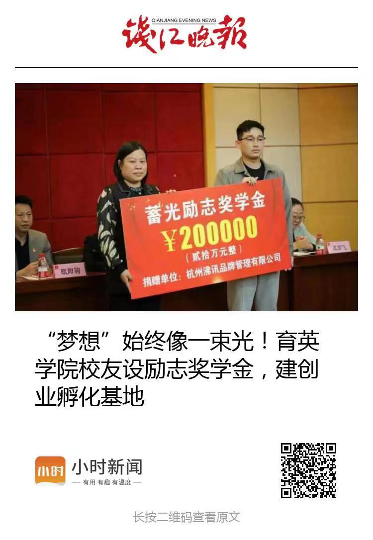 【钱江晚报小时新闻】“梦想”始终像一束光!育英学院校友设励志奖学金,建创业孵化基地