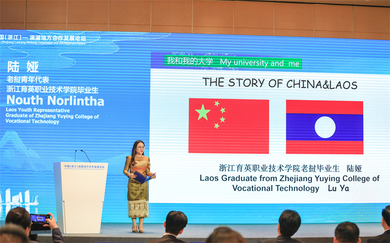 浙江育英职业技术学院老挝毕业生在中国(浙江)澜湄地方合作发展论坛作主题分享