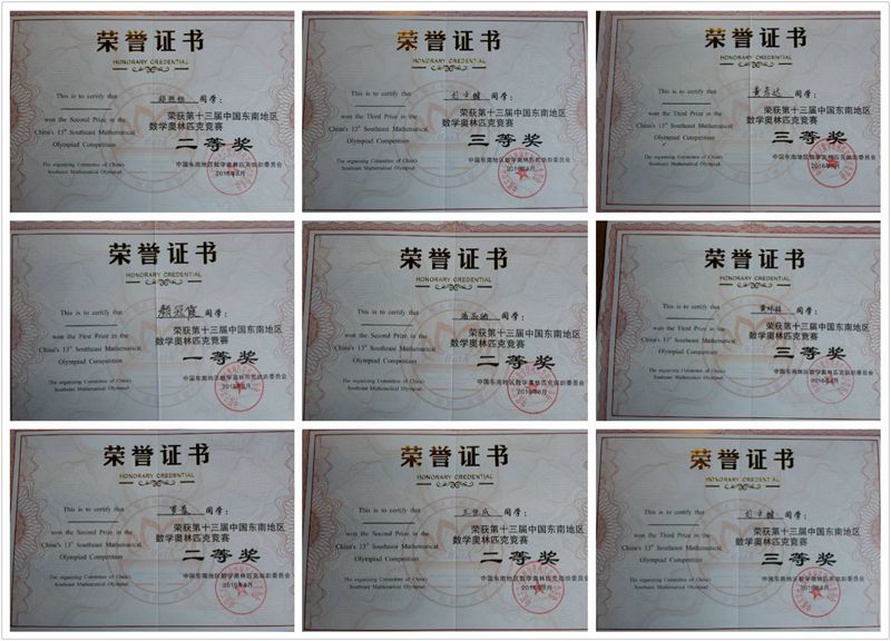 从东南地区奥赛组委会公布的竞赛成绩获悉,在7月31日至8月2日江南南昌县莲塘一中举行的第13届东南地区数学奥赛中,温州育英学校学子继去年获得1枚金牌、6枚银牌、10枚铜牌的优异成绩之后,今年再创佳绩,共获得4枚金牌,10枚银牌,15枚铜牌。本次竞赛的辅导老师是孙涛、徐学德。特此祝贺!具体获奖情况如下: