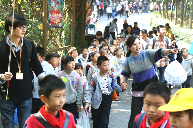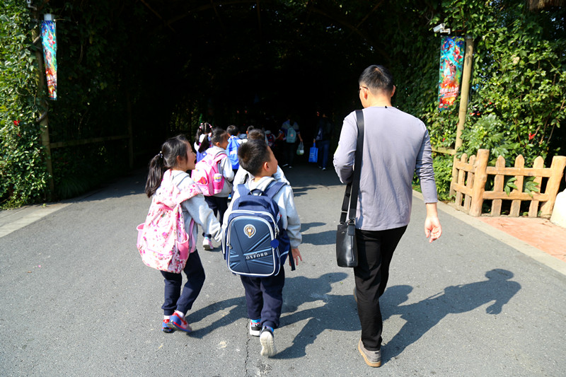 阳光明媚的早上,杭州市育海外国语学校的大小孩子们就背着大包小包的零食在学校迫不及待地准备出发了。经历了两个月的学习,他们终于迎来了第一次秋游。按耐住激动的心情,朝着目的地——杭州野生动物园,出发!