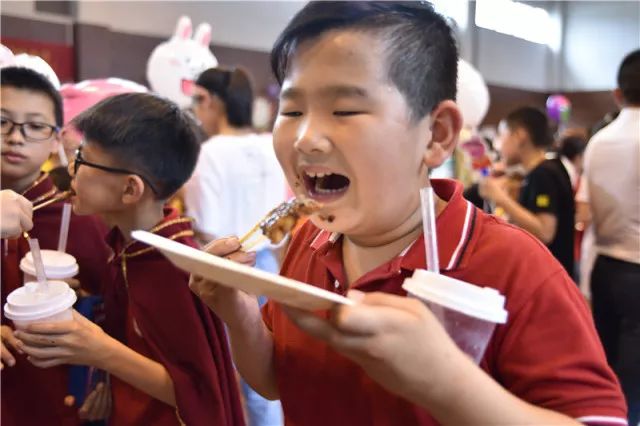 5月31日,杭州市实验外国语学校小学部整个校园都沉浸在浓浓的欢乐之中。热心的家长们带着各种家什和各种美食原料,络绎不绝地出现在校园里,每一个楼层,每一间教室都兴奋起来。和孩子们一起过儿童节,共同分享孩子们的快乐,陪伴他们健康成长,是家长们的心愿,也是学校的心愿。
